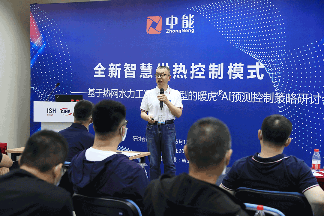 5月12日供熱展開展的同時,中能以“全新智慧供熱控制模式—基于熱網(wǎng)水力工況仿真模型的暖虎?AI預(yù)測控制策略”為主題的研討會在E207會議室成功舉辦。特邀嘉賓孫剛教授、中能股份總經(jīng)理呂松海先生、中能股份總工程師宋士杰先生進(jìn)行了精彩演講?,F(xiàn)場氣氛熱烈,座無虛席。